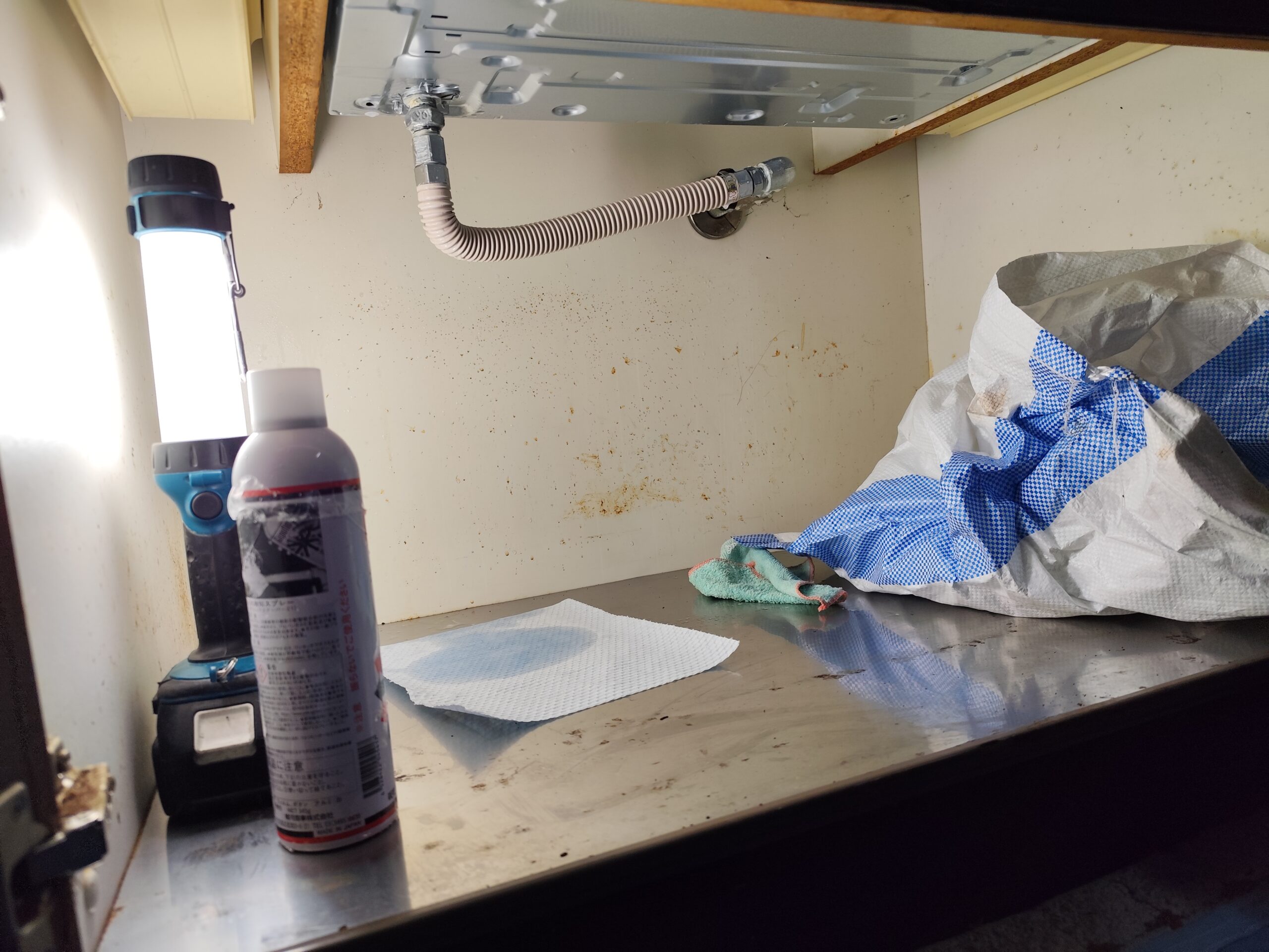 新しく結んだ配管(ホース)にガス漏れが無いか確認、設置後に試運転をさせて頂きお引渡しさせて頂きました。